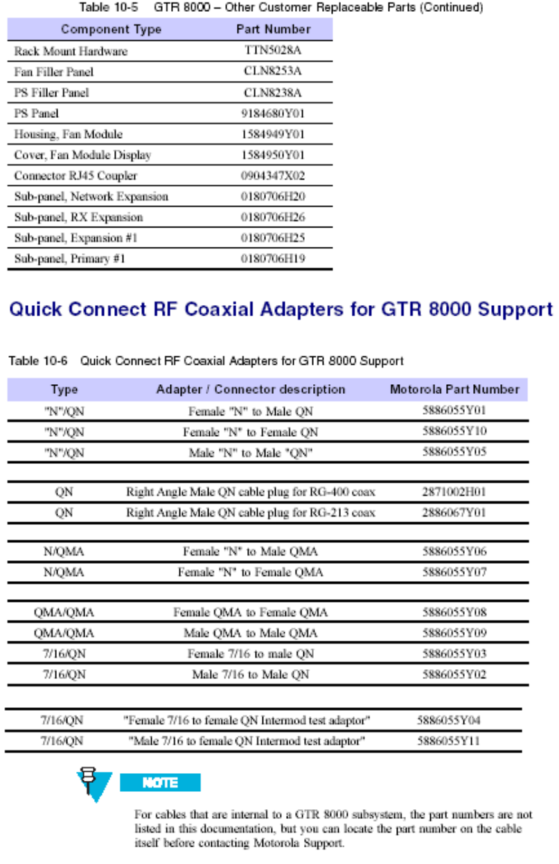 CA01182AA VHF DUPLEXER HARDWARE KIT DLN1380A FRU: CABINET RMC PASS THROUGH MOD