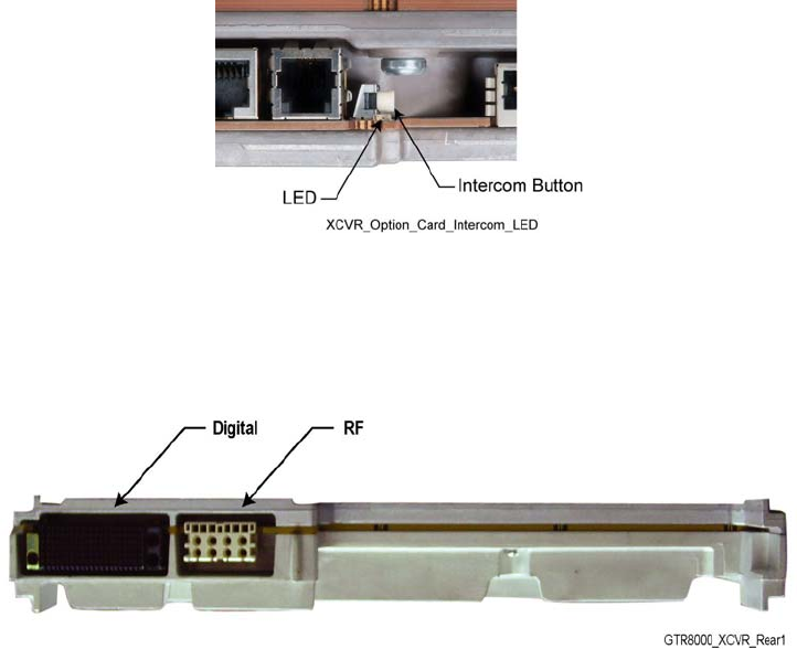 There is one intercom button on the front of the transceiver option card, accessible behind the fan module. Pressing the