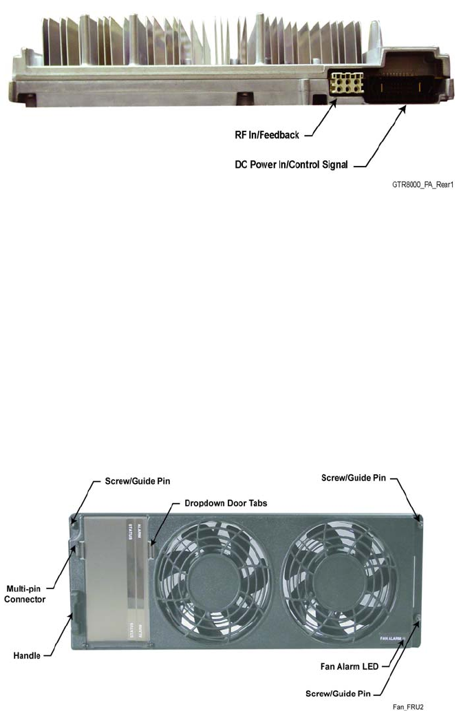 The fan module provides intermittent forced air cooling for the power amplifier and transceiver modules. The fans are