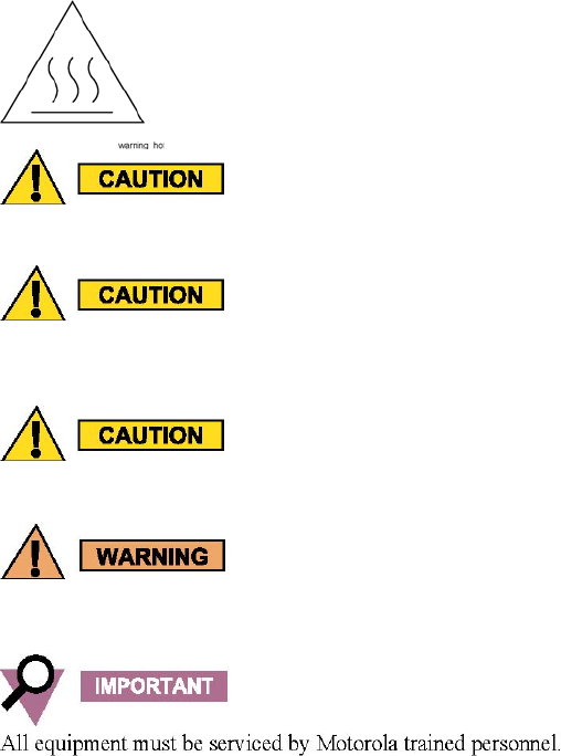 described below, as well as any additional safety information in Motorola’s product service and installation manuals and the Motorola