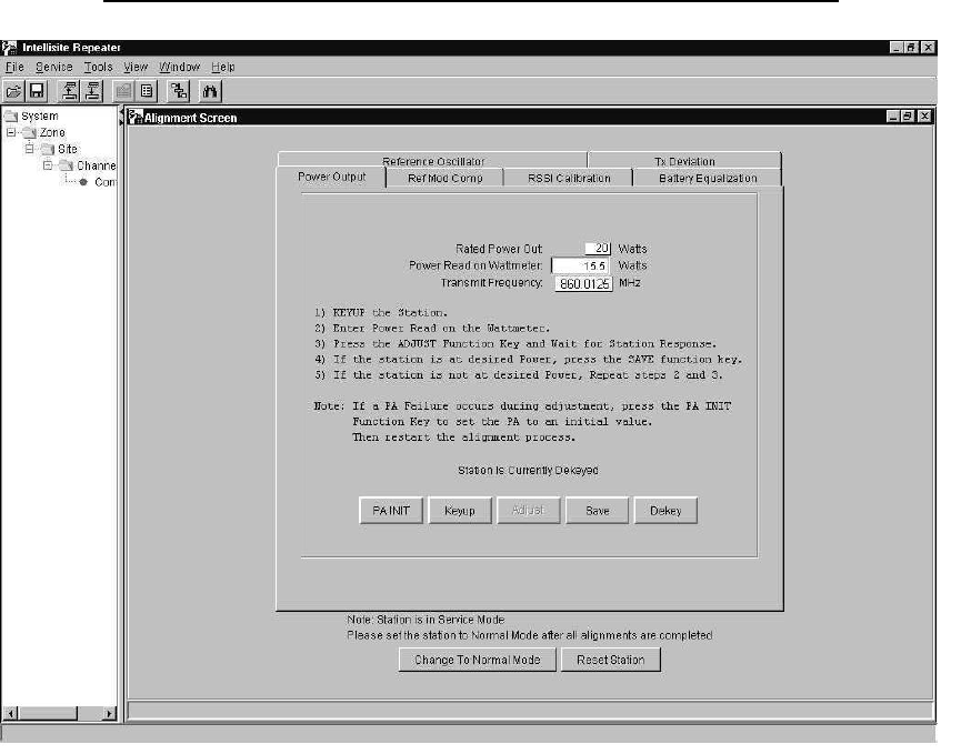 TUNE-UP PROCEDURE - Transmitter Power Output Alignment Screen