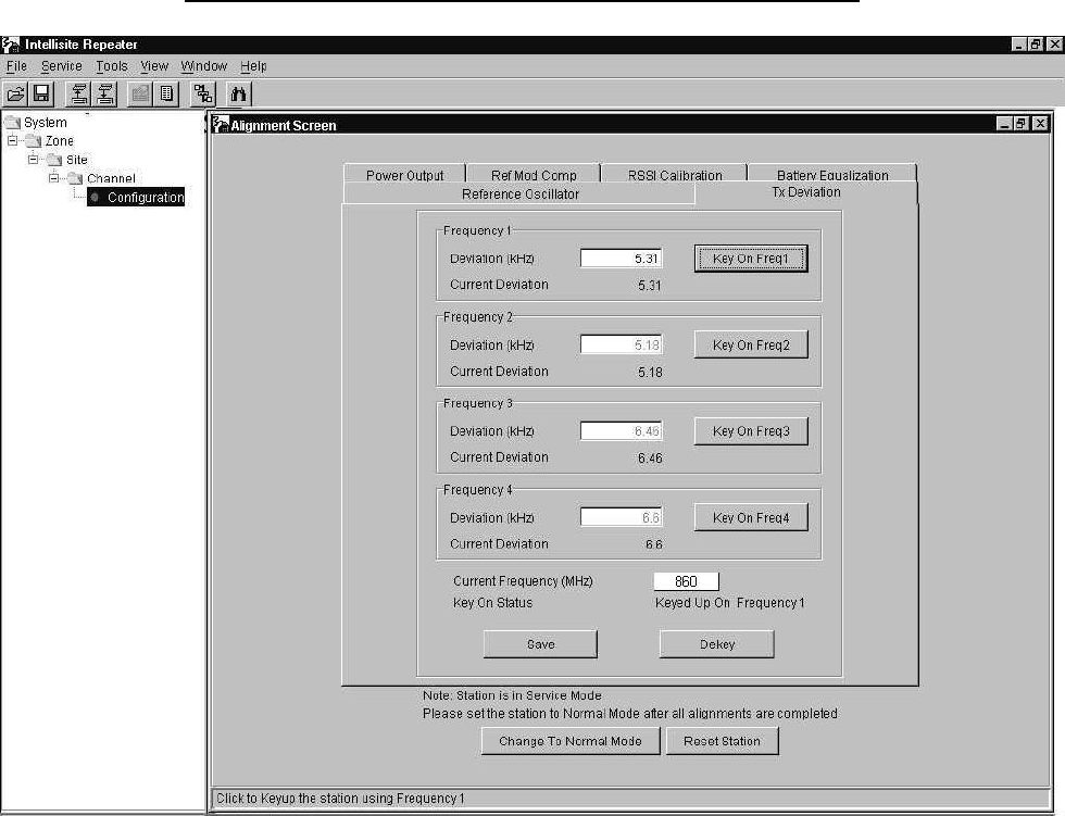 TUNE-UP PROCEDURE - Transmitter Deviation Alignment Screen