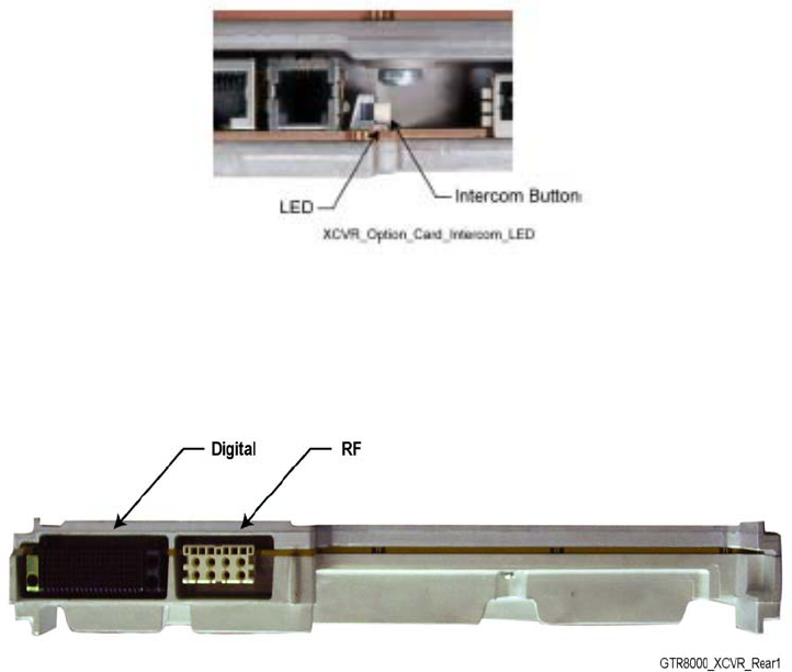 There is one intercom button on the front of the transceiver option card, accessible behind the fan module. Pressing the