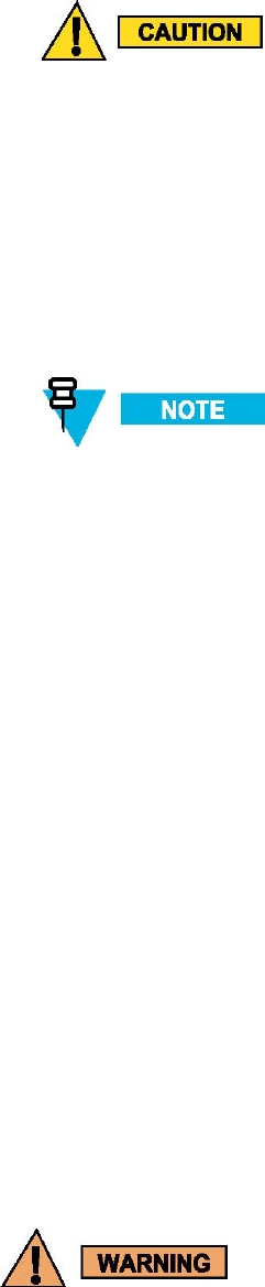 • Shock hazard. The outer shields of all TX and RX cables must be grounded per Motorola R56 manual.