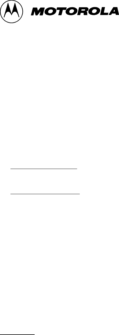 Product manufactured by MOTOROLA. MOTOROLA assumes no obligations or liability for