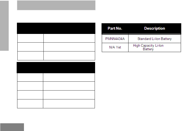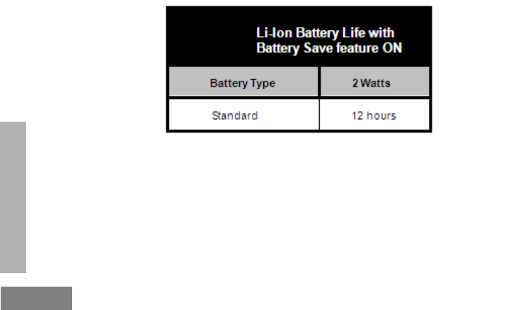 Battery Level Displayed during normal radio mode operation, displays battery life remaining