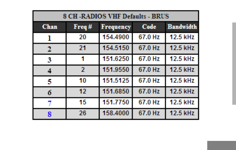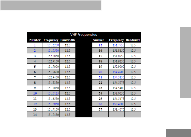 RDX VHF Frequencies Chart . . . . . . . . . . . .61