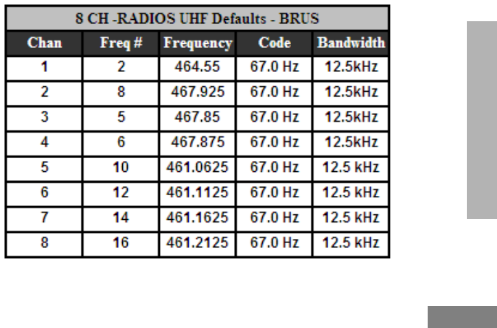 RDX UHF Frequencies Chart . . . . . . . . . . . .65