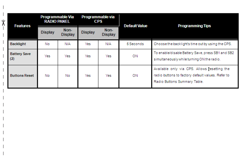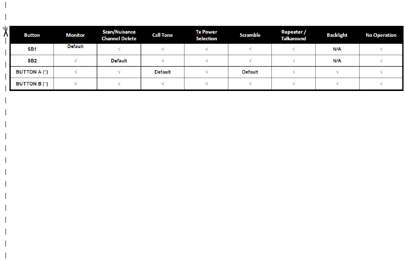 Talkaround (3) No No Yes Yes OFF Programming an SBx button is needed to use this