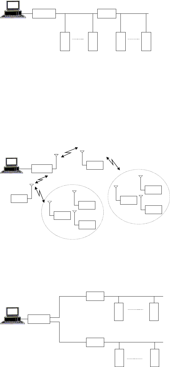 transmission to several centrals, or a hierarchical system where some of the RTUs serve as