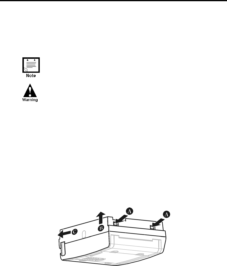 the case. Lift the cover (B) and push forward slightly (C), to release the cover from the top