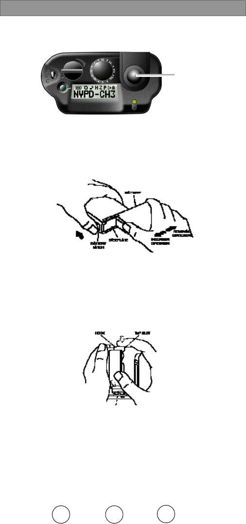 •ATTACH: With the battery removed, hook the top of the belt