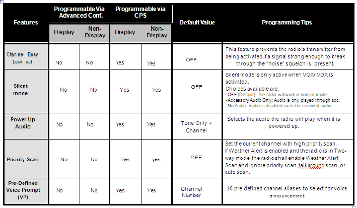 (2) Using CPS you can prevent this feature to be programmed via front panel radio.