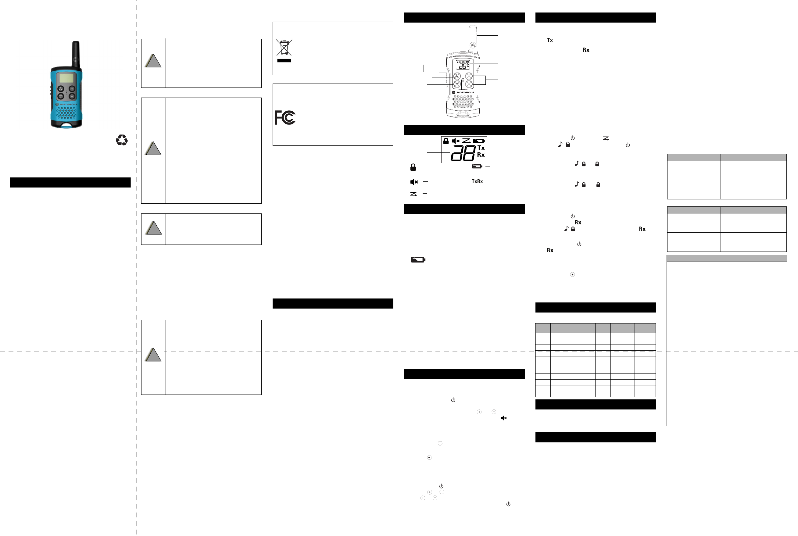 5 462.6625 MHz 2 W 16 462.5750 MHz 2 W