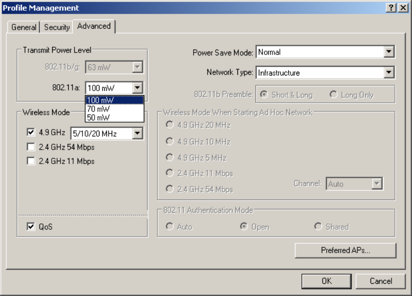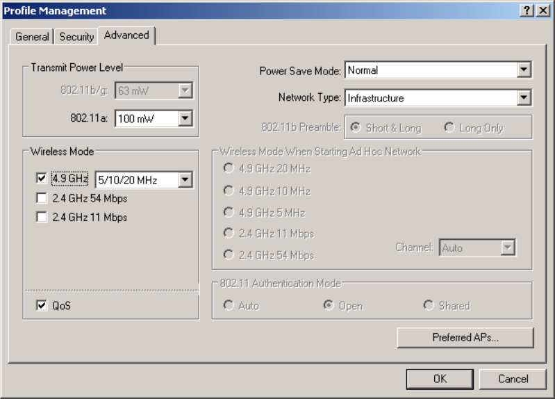 12. When configuring an Ad hoc profile, select the desired Wireless Mode When Starting Ad