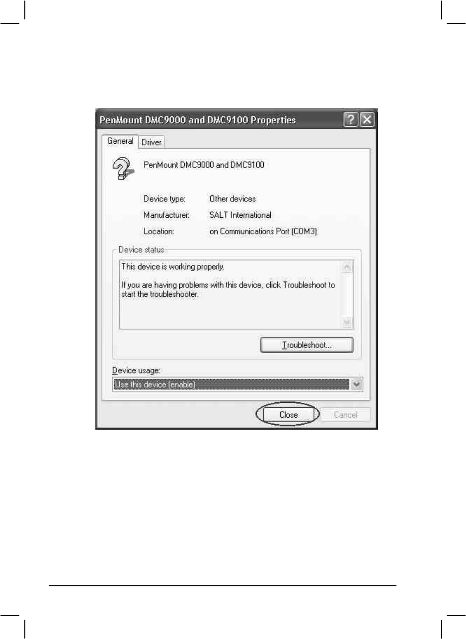 12. When the “PenMount DMC9000 and DMC9100 Properties” screen