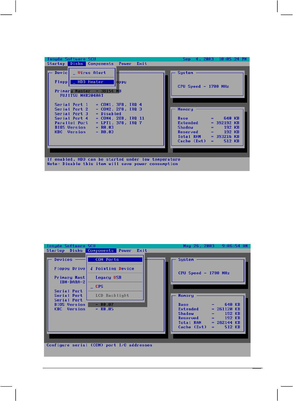 1. Make sure the “COM1 Ports” item is set properly in the SCU