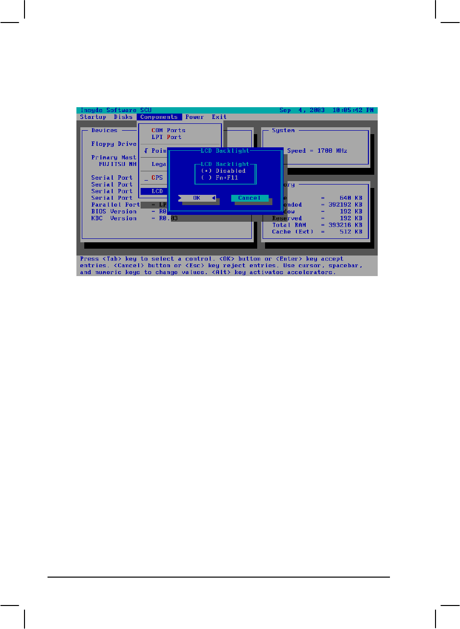 Fn+F11: Enabled/Disabled the LCD Backlight On/Off.