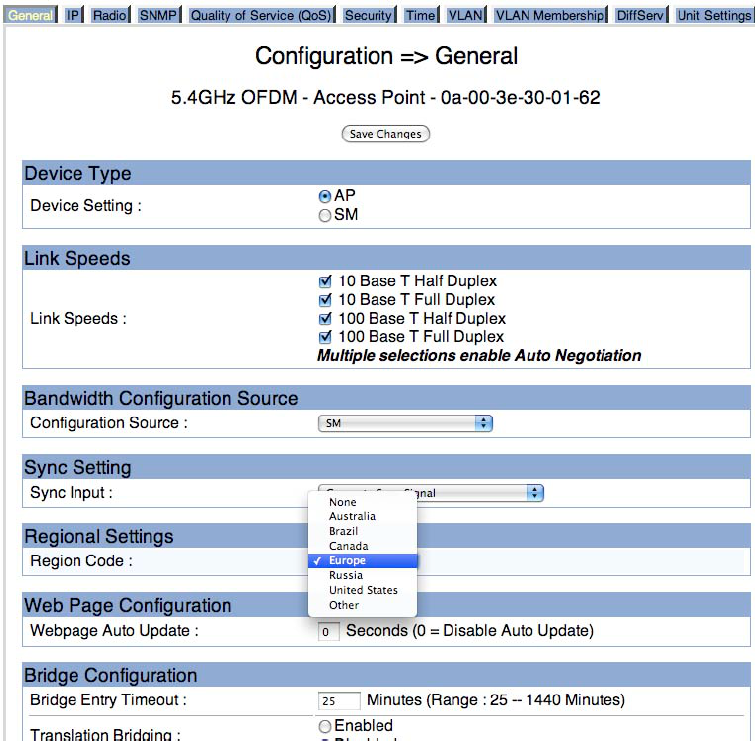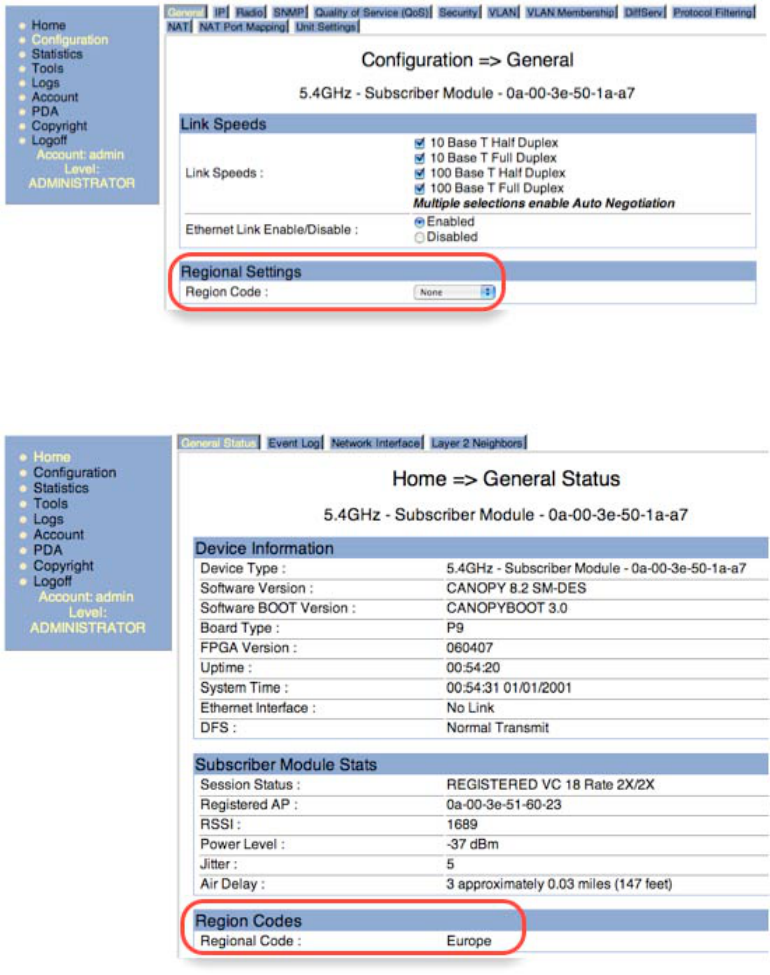 Figure 6: Region Code on AP “Configuration => General” page 24