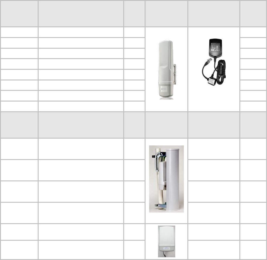 Table 2: 5.8GHz OFDM - PMP 430 Series Model Number Descriptions ........................ 12