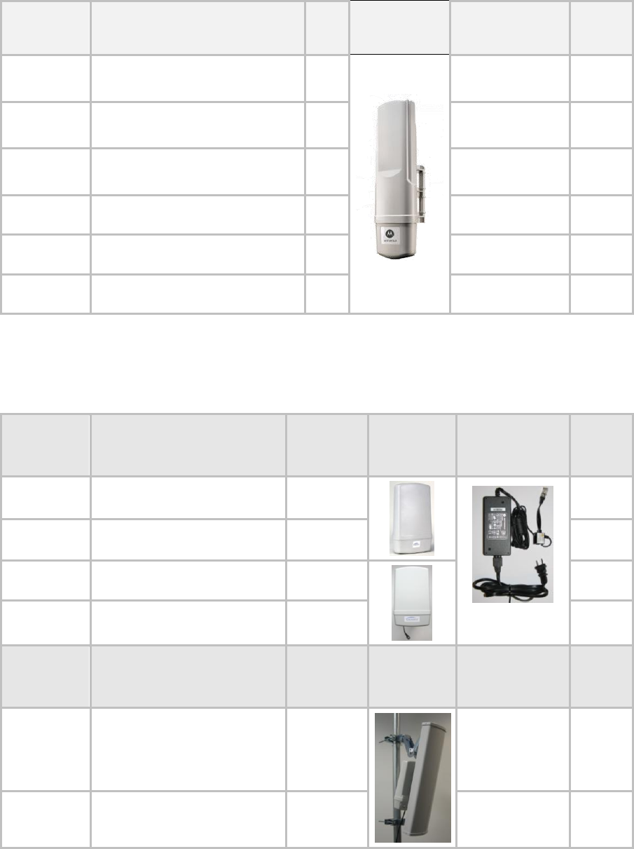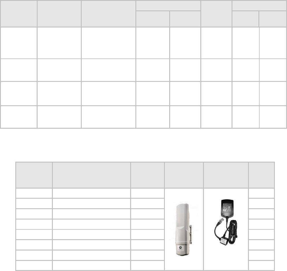 Table 1: Motorola PMP 400/430 and PTP 200/230 Series............................................. 12