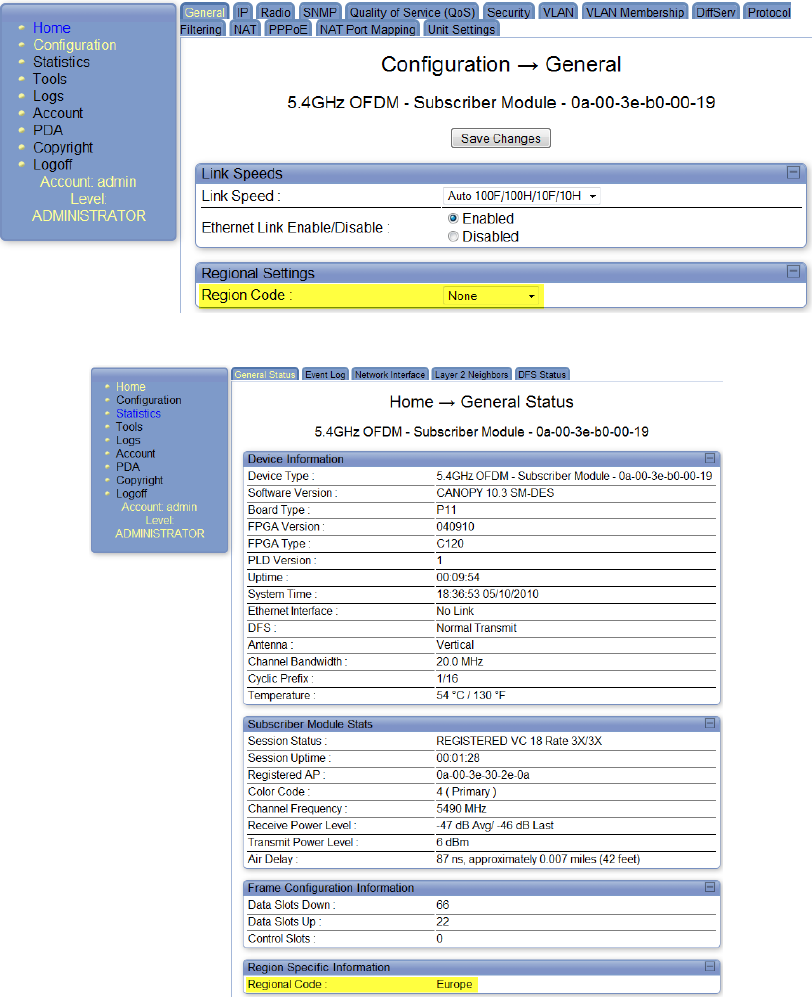 3.4 DFS and Regulatory Parameters for 5.8 & 5.4 GHz Radios ............................. 46