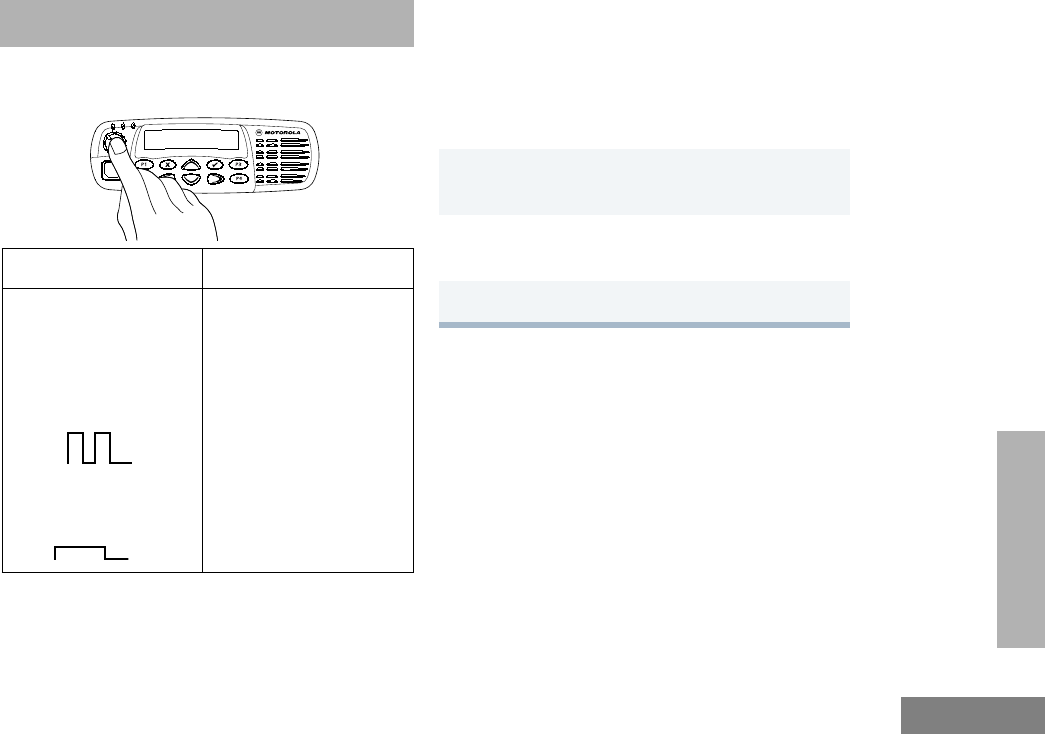 4. Press PTT, hold the microphone 1 to 2 inches (2.5 to 5 cm) from your mouth,