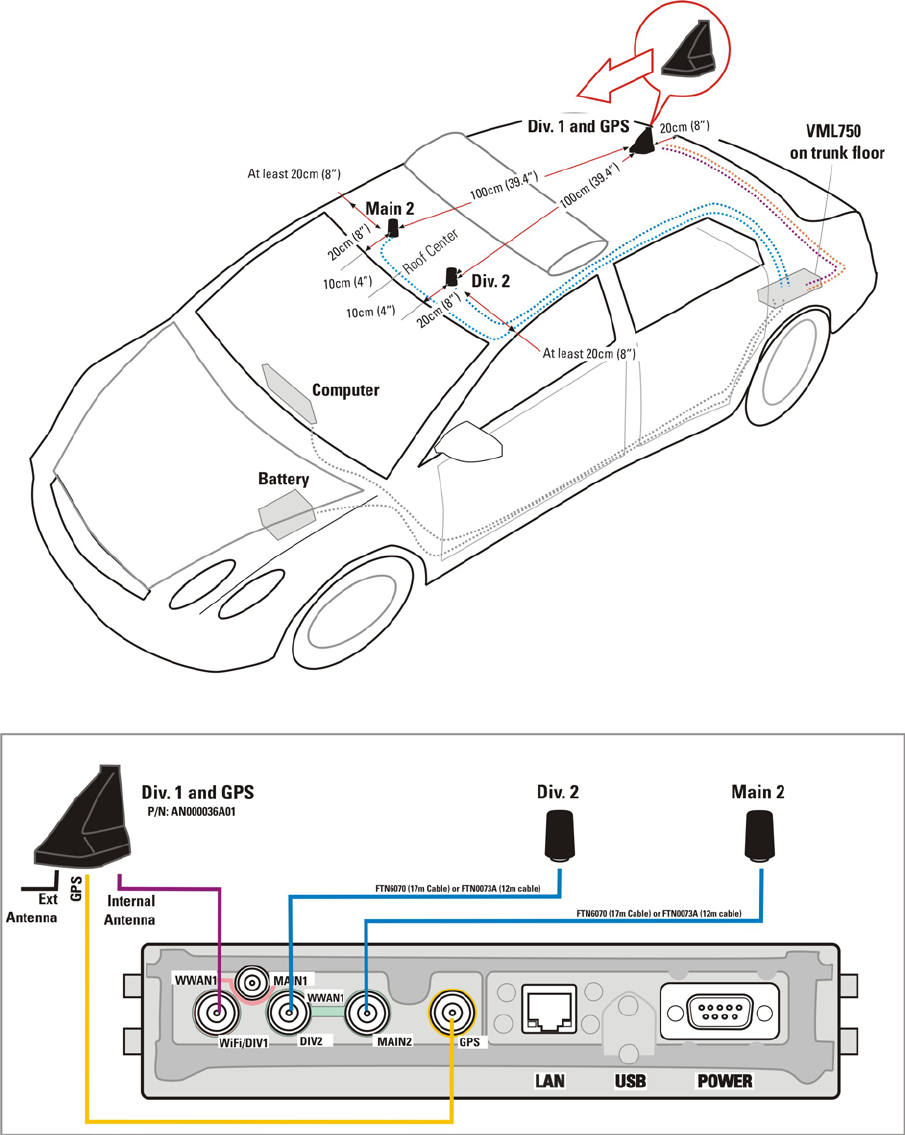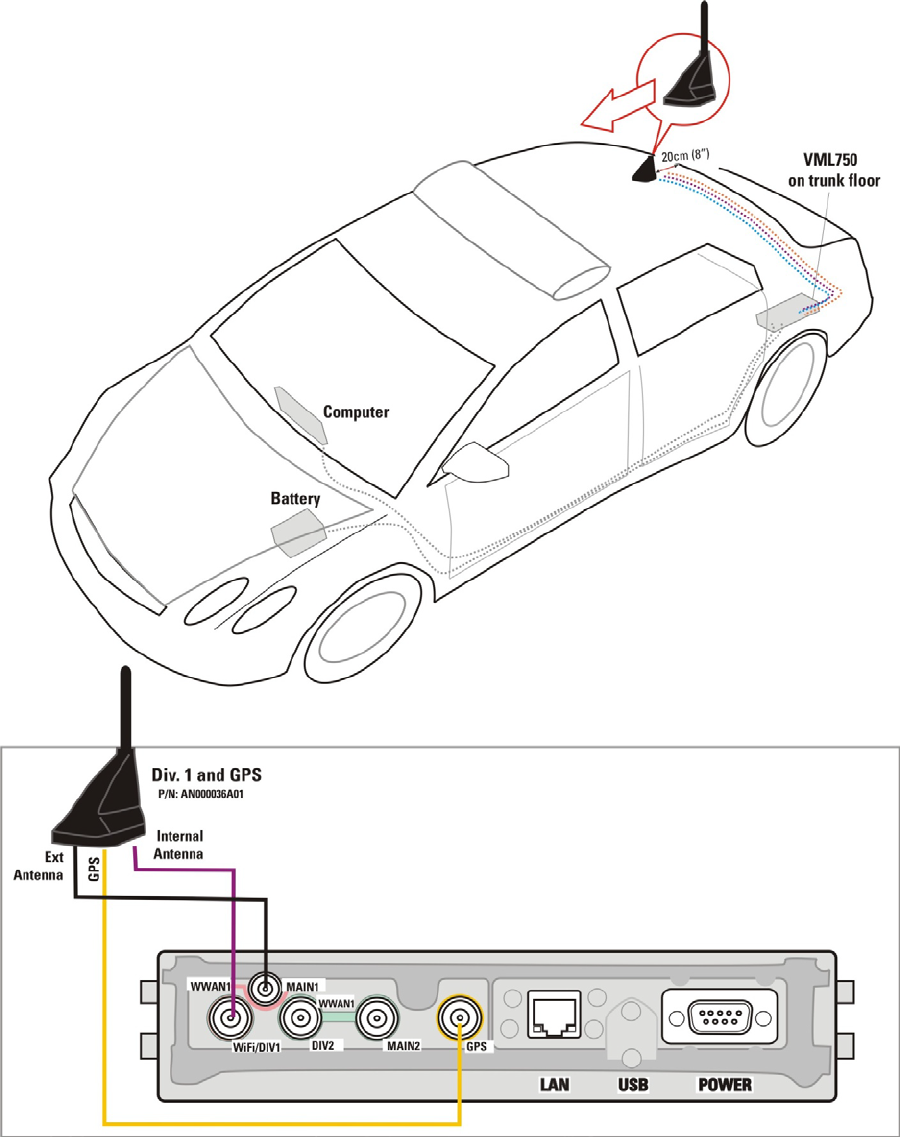 The VML750 LTE Vehicular Subscriber Modem (VSM) is composed of numerous Field Replaceable