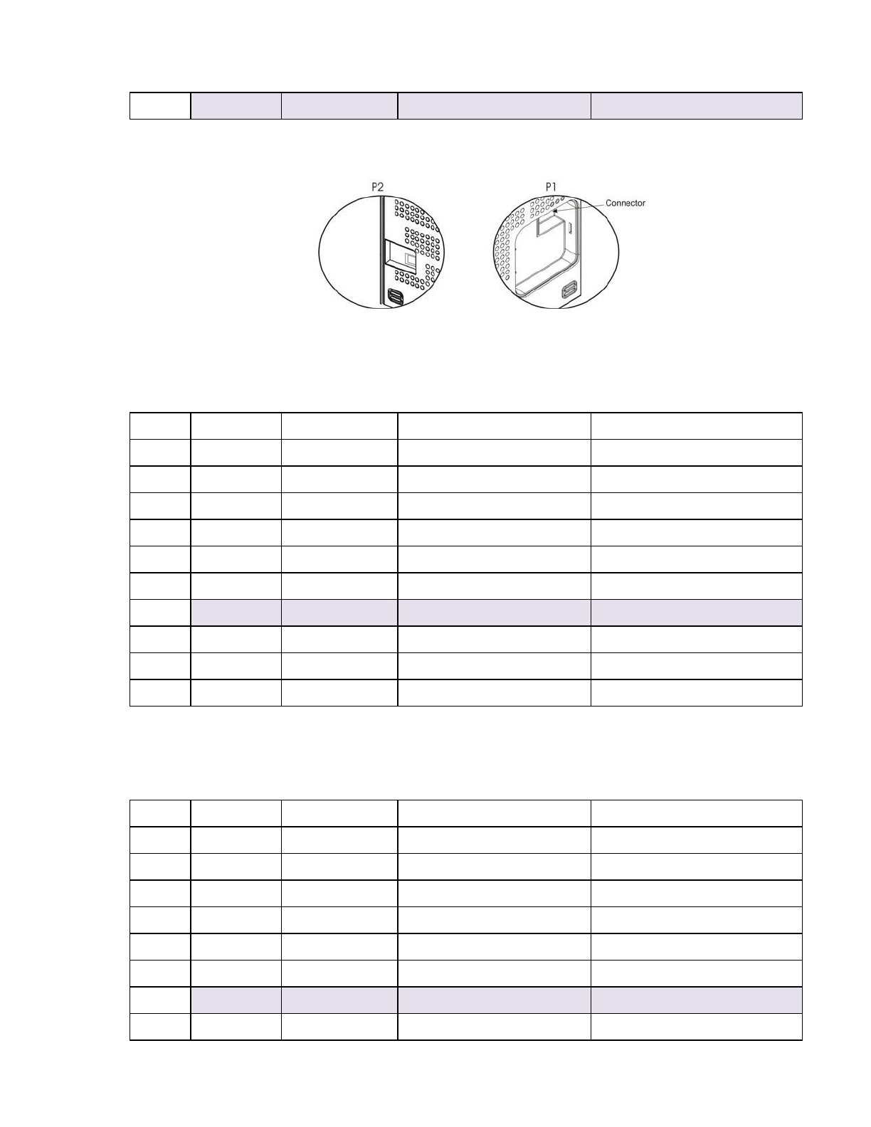The table below lists the pin out for the P2 RJ50 Power/CAN connector on the left side of the