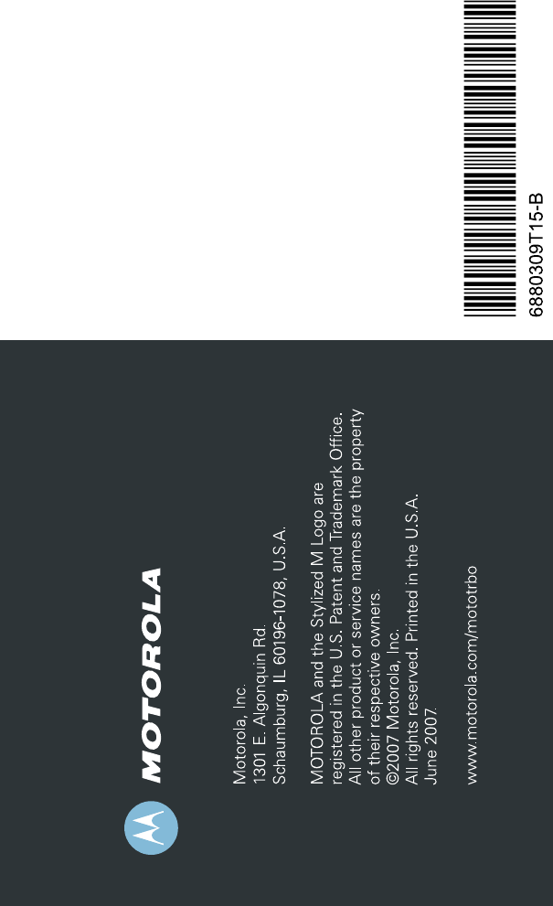 Motorola Solutions, Inc. MOTOTRBO VHF 45 Mobile Radio User Guide Prototype 2