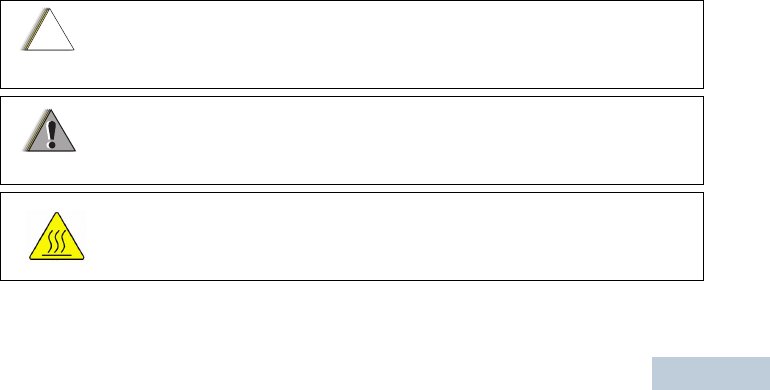 • Burn hazard. The metal housing of the product may become extremely hot. Use caution when working around the equipment.