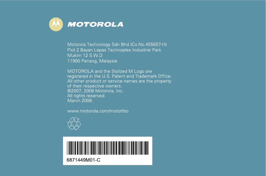 MOTOROLA, the Stylized M logo are registered in the US Patent & Trademark Office. All other product or service names