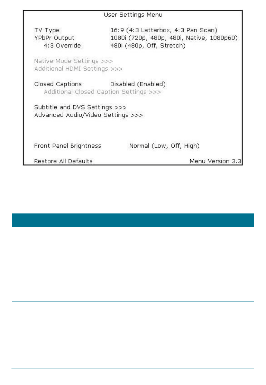 • Turn on the 4:3 OVERRIDE feature in the User Settings menu. This enables