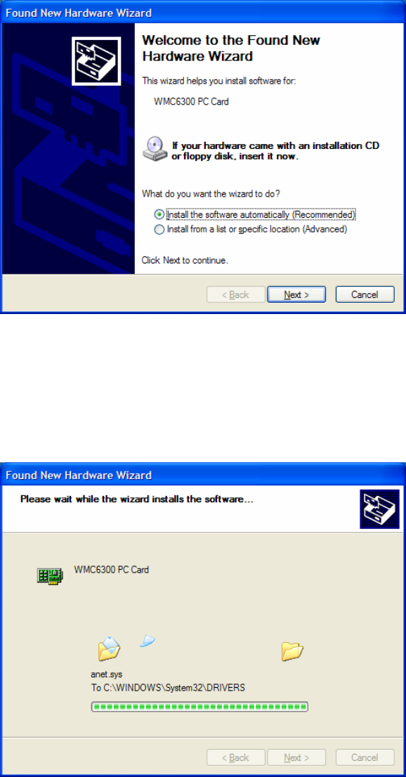 - Insert the WMC6300 Wireless Modem Card