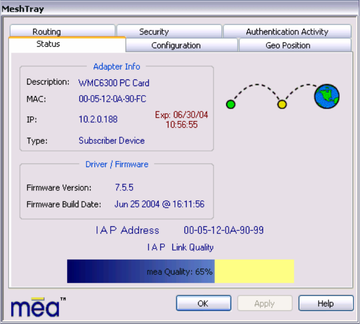 - MeshTray Status Tab