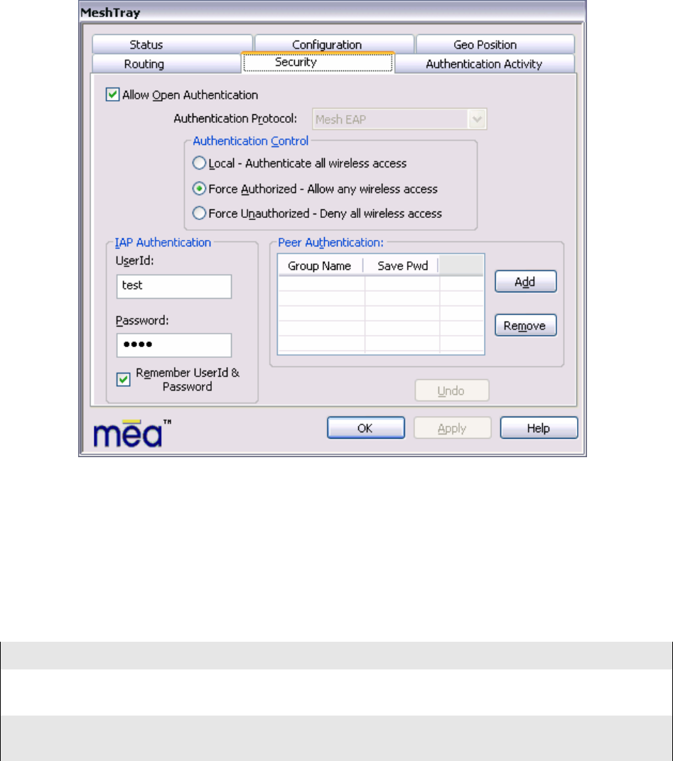 - MeshTray Security Tab