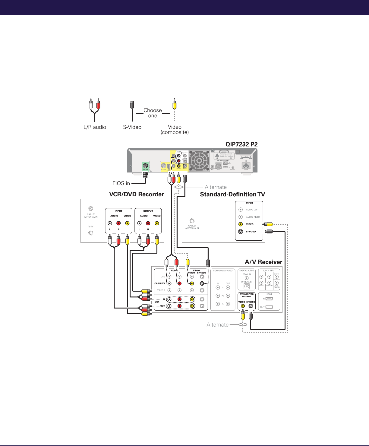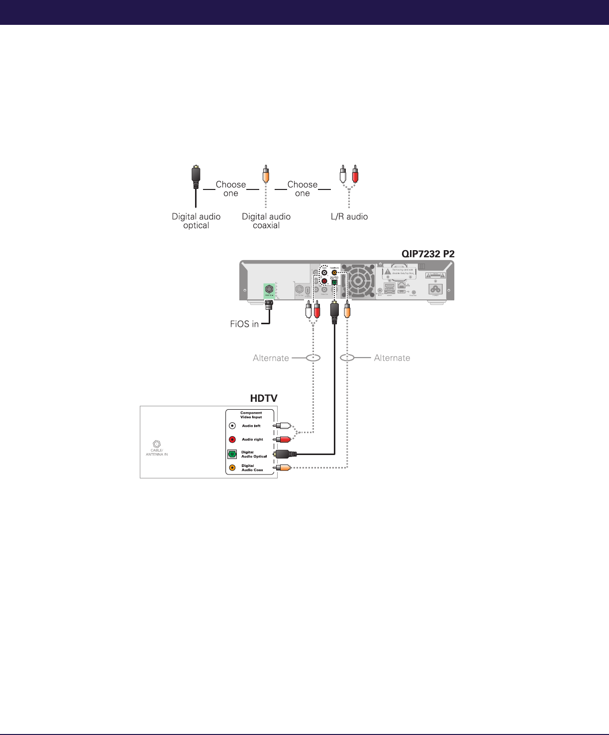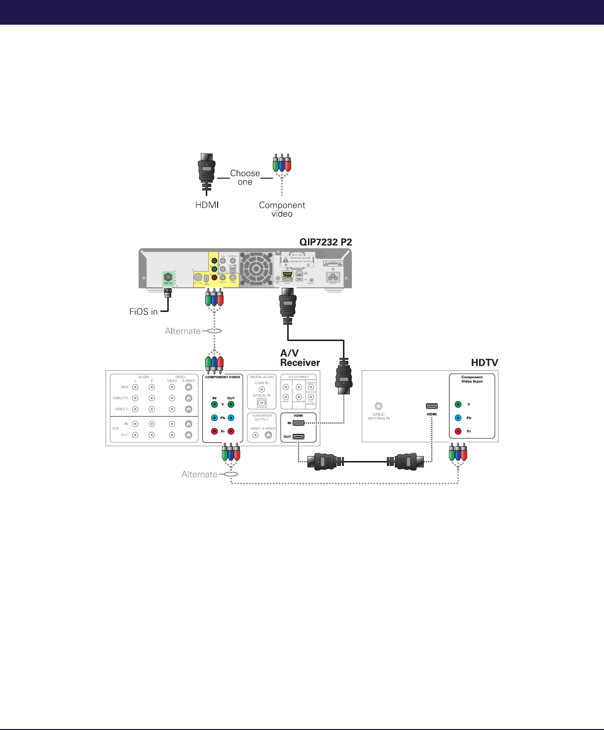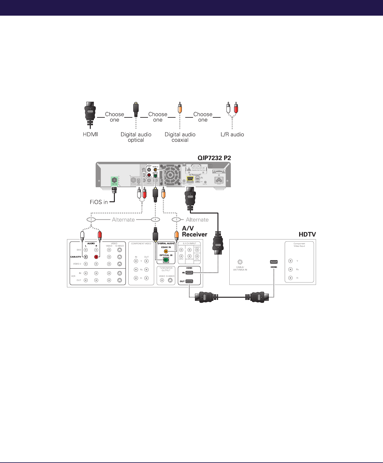 If the QIP set-top audio output is connected to a home theater receiver, verify that the receiver is •
