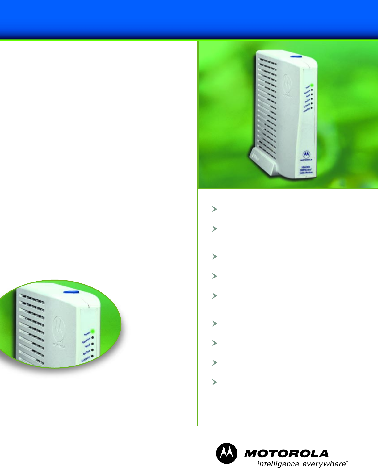 Designed with the consumer in mind, the Motorola SB4200E Cable Modem is ready for high-speed surfing.