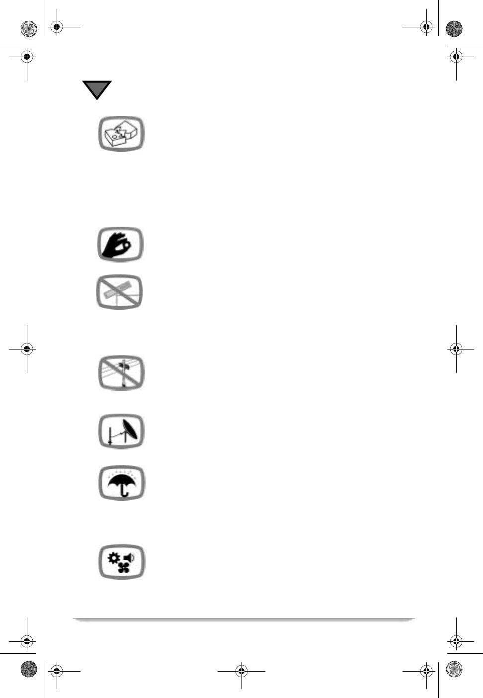 • Do not open the cover (enclosure) or attempt to repair the receiver. This will