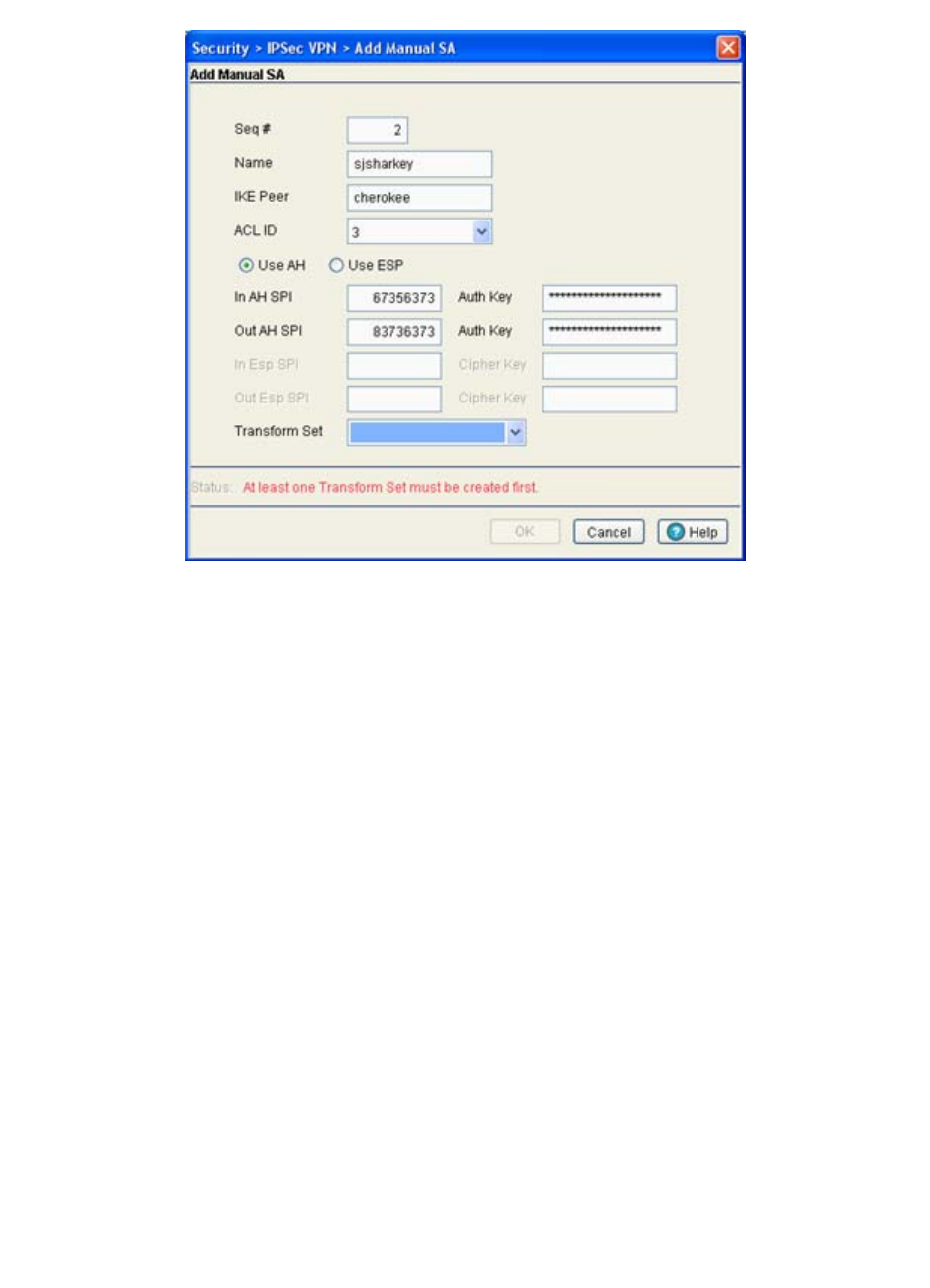 4. Click OK to save and add the changes to the running configuration and close the dialog.