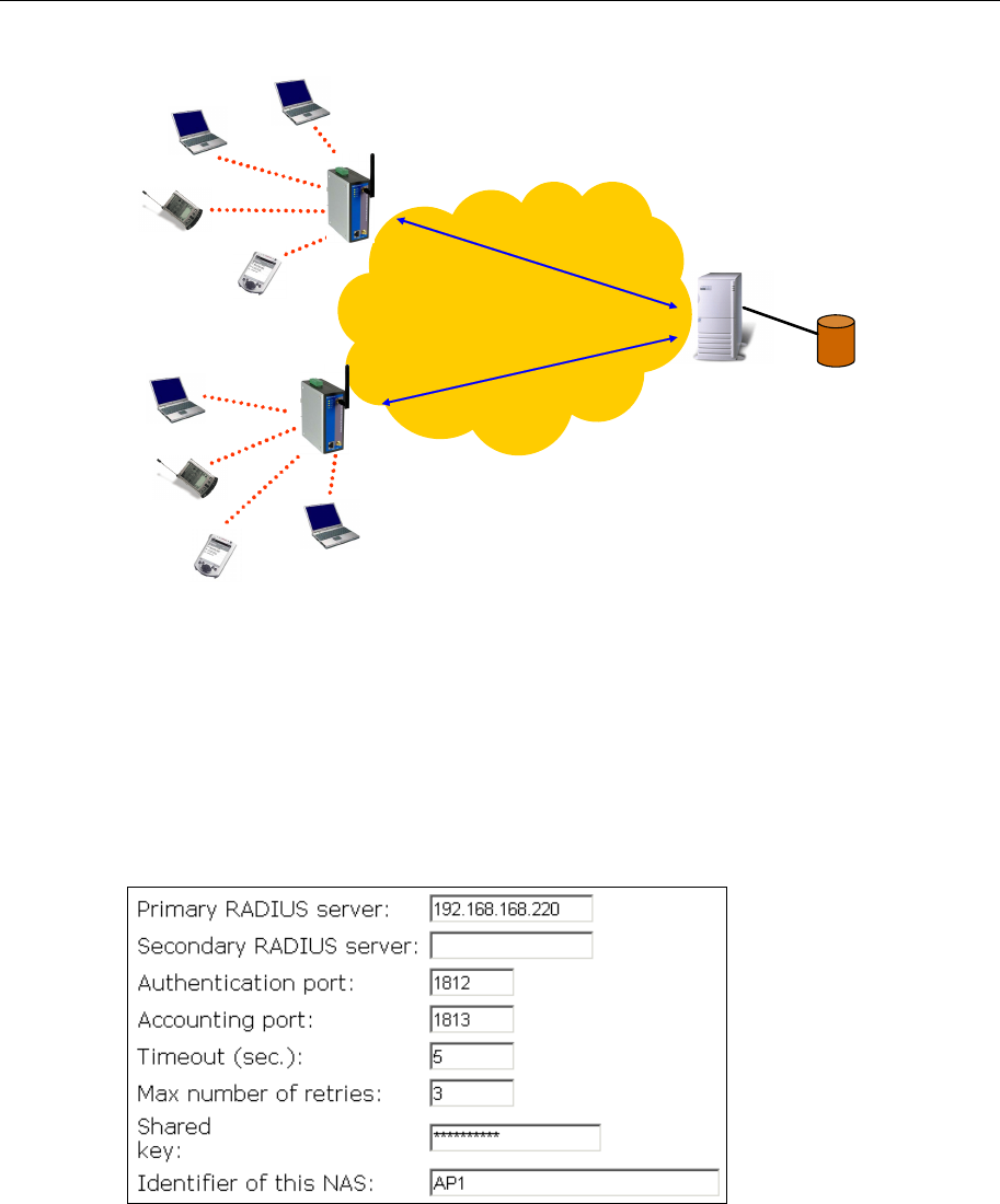 AWK-1100 can authenticate and authorize wireless users by IEEE 802.1X and RADIUS, and