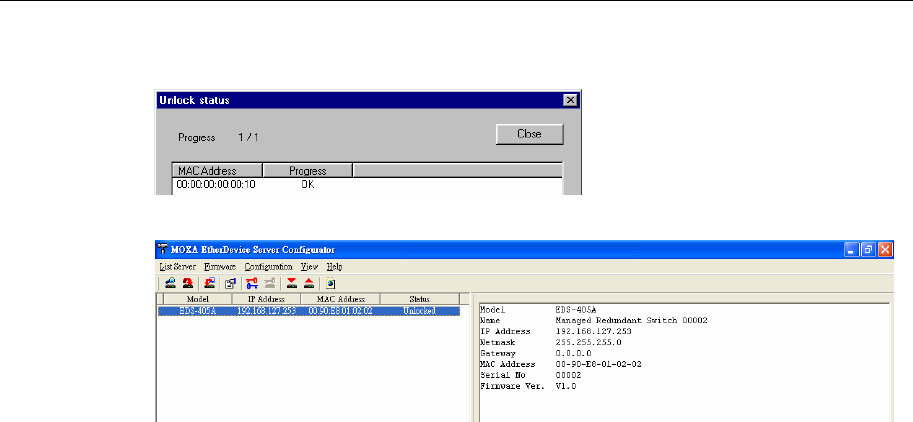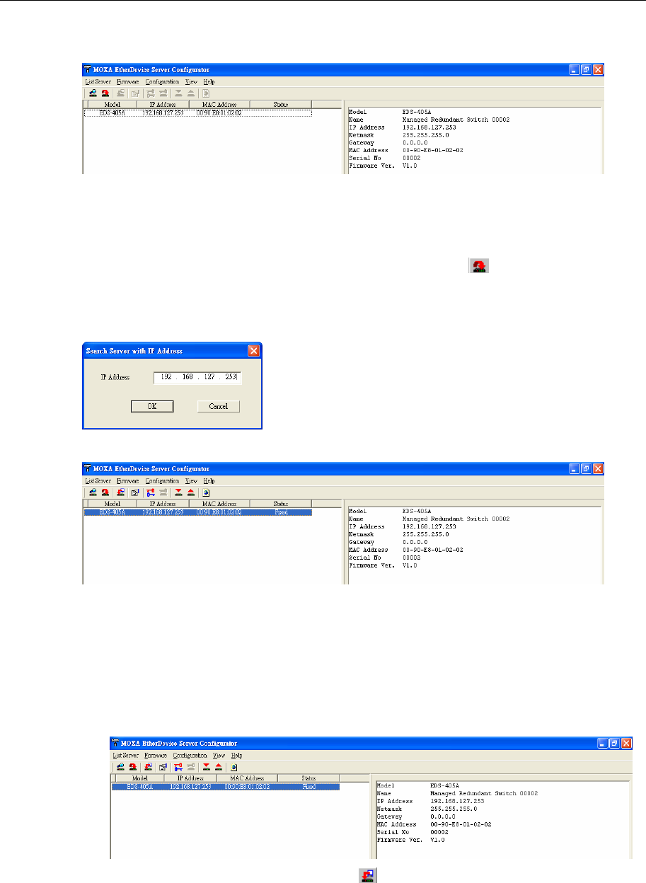 “Locked” or “Locked Fixed”). Highlight the server (from the Moxa EtherDevice Switch list in the