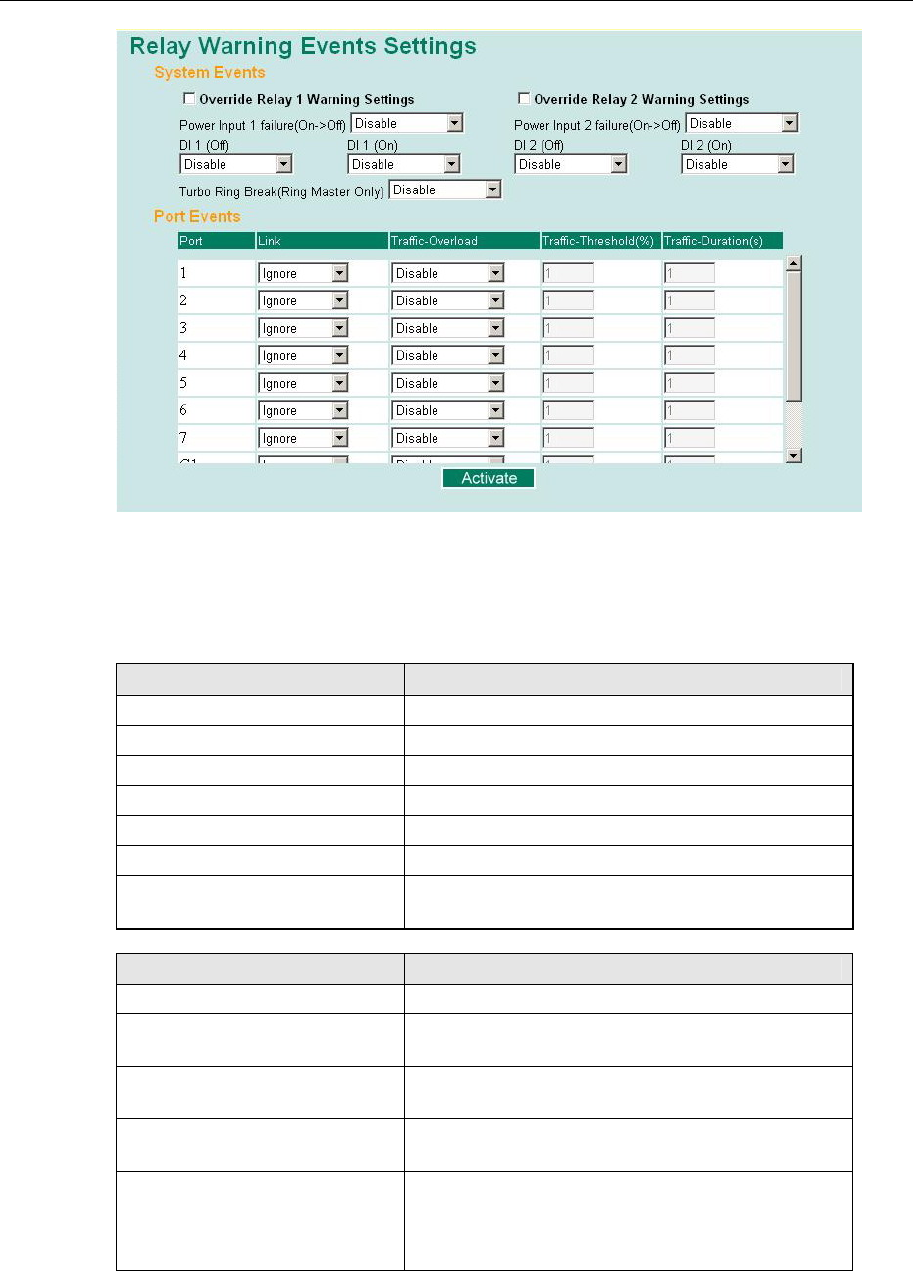 Alarm Contact Two relay outputs with current carrying capacity of 1A @ 24