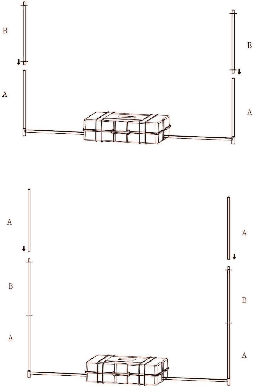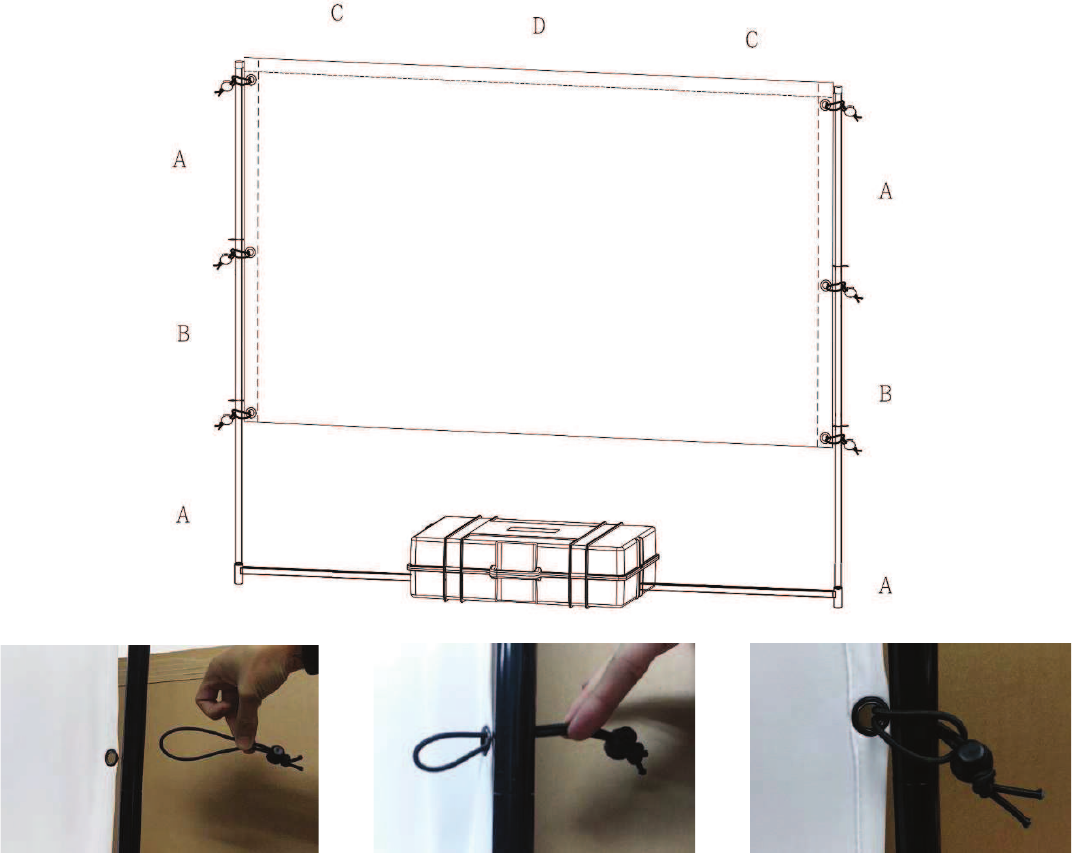 Attach the hook at one end of the string to the hole midway up poles B. It is recommended to attach to