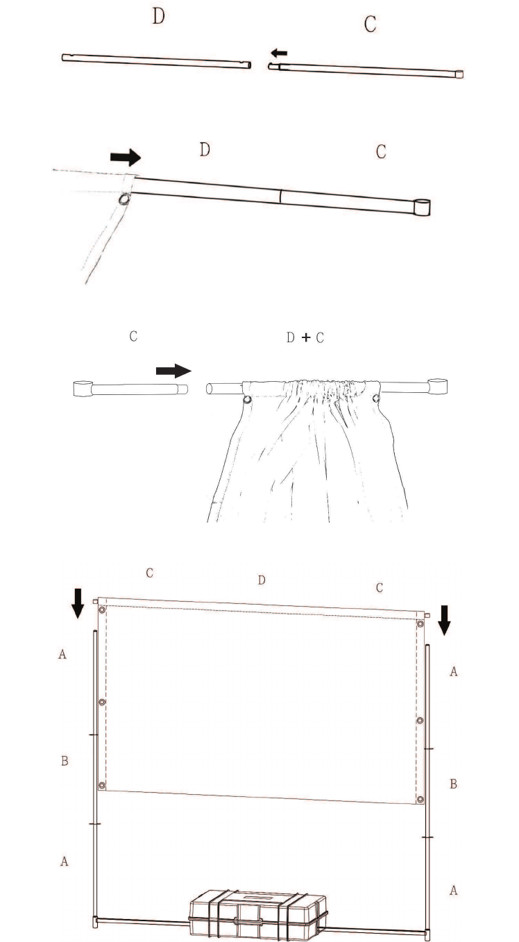 Slide the sleeve at the top of the Screen over Pole D and Pole C.