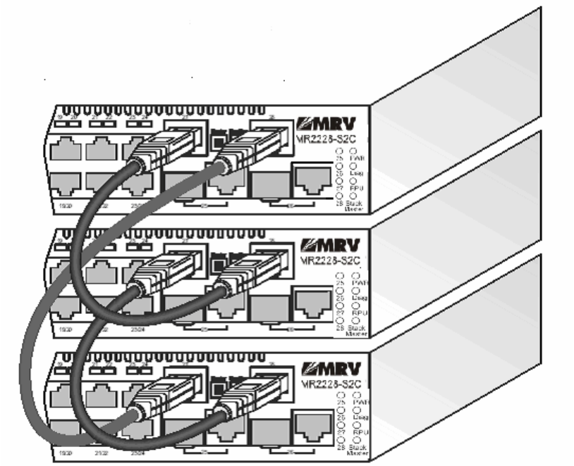 units in one stack. The stacking ports can also be used as normal Ethernet ports