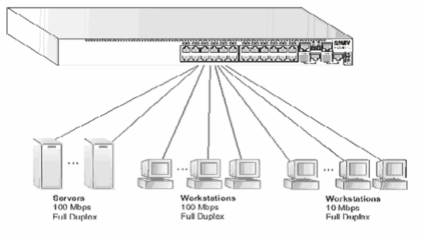 with 24 10BASE-T/100BASE-TX (RJ-45) Ports,2 1000BASE-T Combination Ports