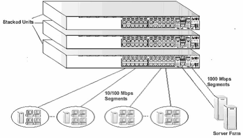 switch also provides two 1 Gbps built-in stacking ports for connecting up to eight