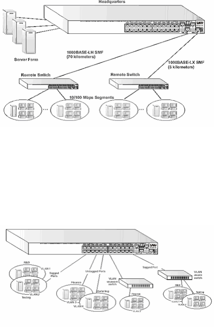 broadcast domains with IEEE 802.3Q compliant VLANs, and empowers