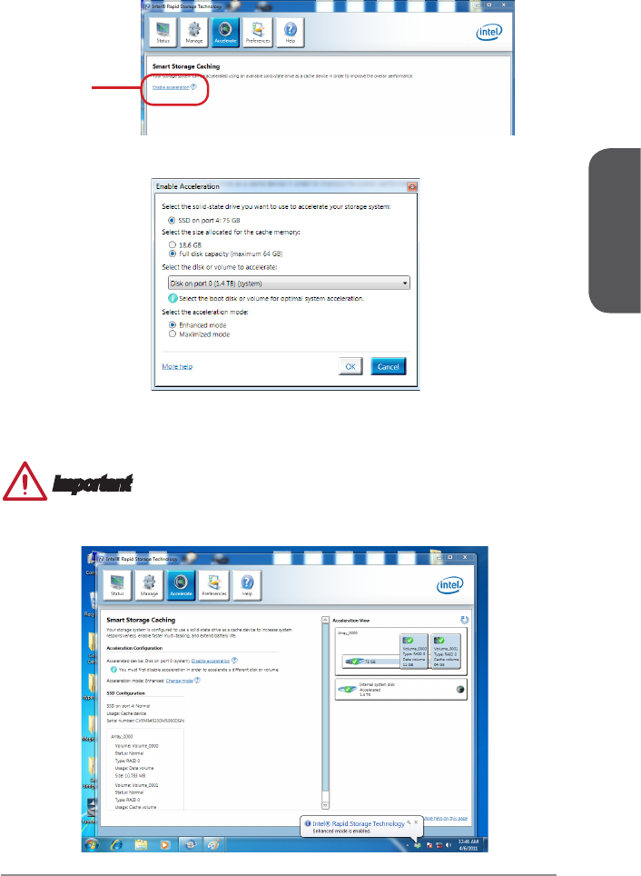 Follow these steps to enable system acceleration. If Windows has been installed in